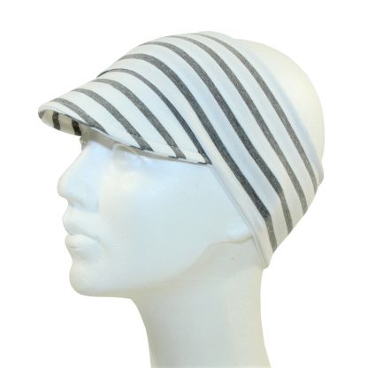 Raidallinen lipallinen panta kaksinkertaista luomupuuvillaa. Leveys n. 8cm. 92% puuvillaa 8% elastaania. Pesu 40 asteessa, ei rumpukuivausta, 1 pisteen silitys. Lippa on vahvistettu tukikankaalla.